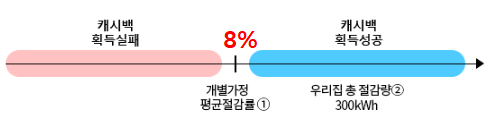 예를 들어 개별가정의 평균절감률을 8%일때 우리 집의 절감률이 9% 이상이어야 캐쉬백을 받을 수 있습니다.
