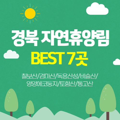 안녕하세요. 오늘은 경북지역에서 가볼만한 자연휴양림 7곳을 소개해드리려고 합니다. 각 자연휴양림의 특징을 적어두었으니 잘 읽어보시길 바랍니다!