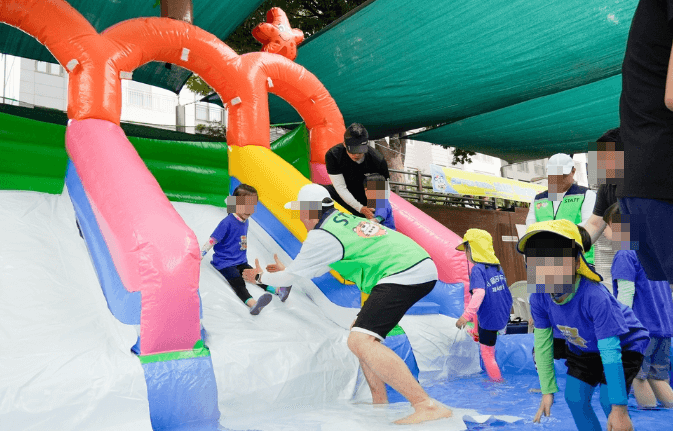 올해 성내천 물놀이장에 트릭아트존과 워터슬라이드가 새로 추가되었다고 합니다. 축구장보다 1.5배나 긴 수영장을 다양한 수심으로 설계해서 어린이들이 연령별로 즐길 수 있는 곳입니다.