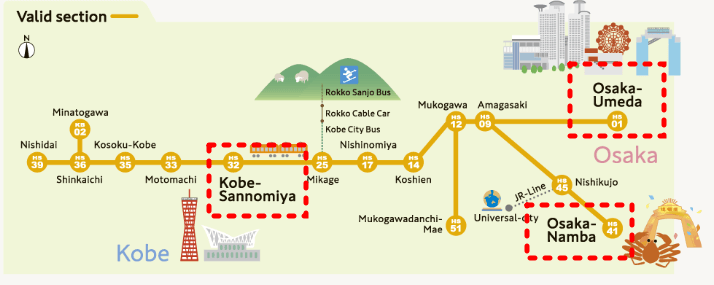 나는 오사카 근교로 '고베'만 구경하면 되고, 숙소가 오사카 난바역(또는 우메다역) 근처여서 난바에서 바로 고베로 가고 싶다 하시는 분들은 한신패스를 구매하시면 됩니다.
