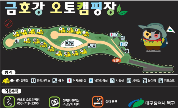 주의할 점은 금호강 캠핑장의 경우 북구민의 세금으로 만들어진 시설이라 북구 지역 주민 우선예약 정책이 있습니다.