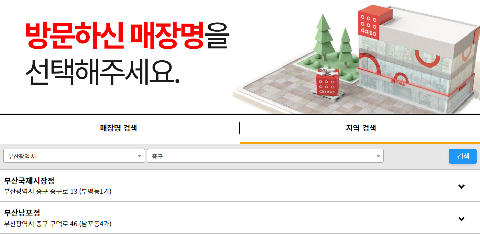 1. 다이소 재고조회(확인) 사이트 접속(https://kioskfo.asungcorp.com/kiosk/index_common)