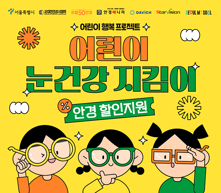 서울시에서 신학기를 맞이하여 어린이들의 눈건강을 위하여 시력검사와 안경구입 할인을 지원합니다.