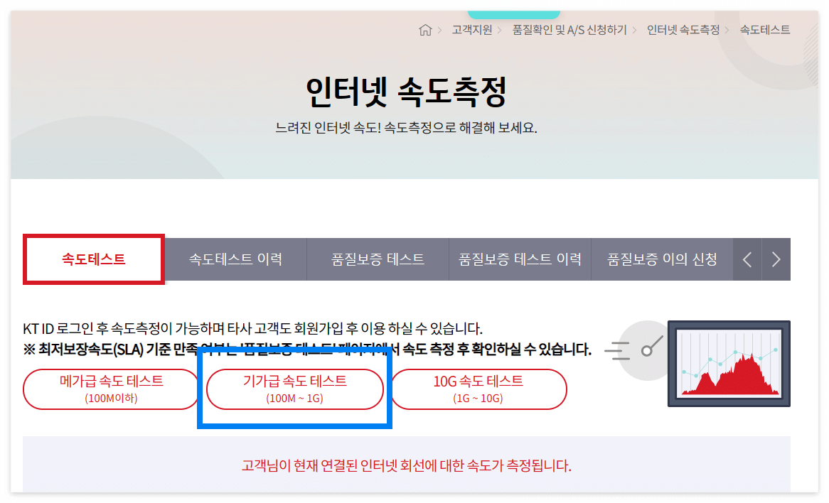 제일 먼저 소개해드릴 방법은 KT에서 제공하는 인터넷 속도측정 방법입니다.