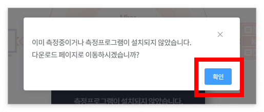 ③ 아래의 사진과 같이 측정프로그램 설치 문구가 뜨면 확인을 눌러 측정프로그램을 설치하시길 바랍니다.