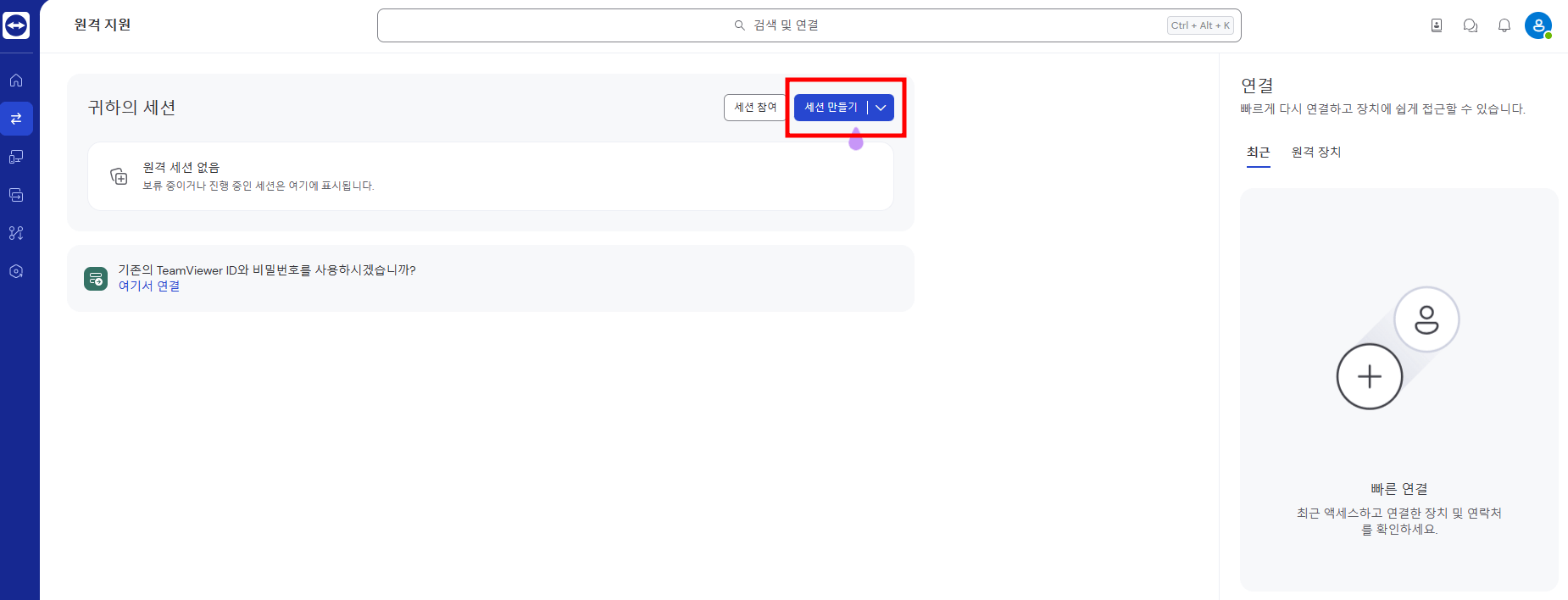 ④ 아래의 사진같은 화면이 뜬다면 성공적으로 팀뷰어 프로그램을 설치하신 것입니다.