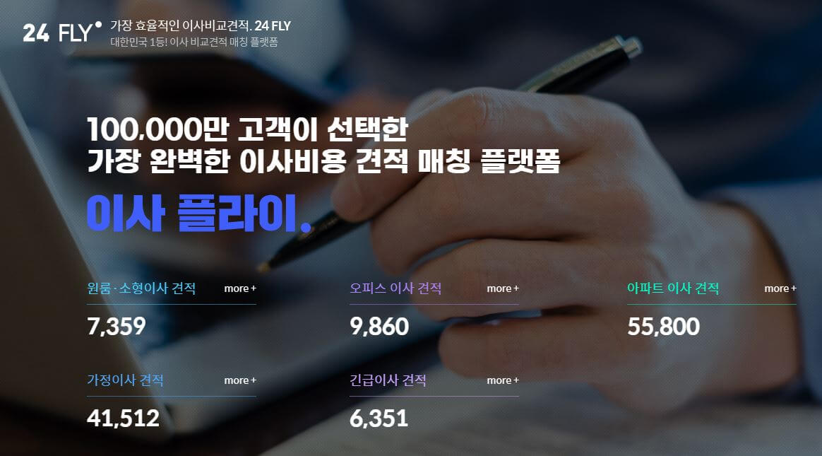 이사플라이 사이트에서 간단한 이사 정보를 입력하시면 무료견적을 받을 수 있습니다.