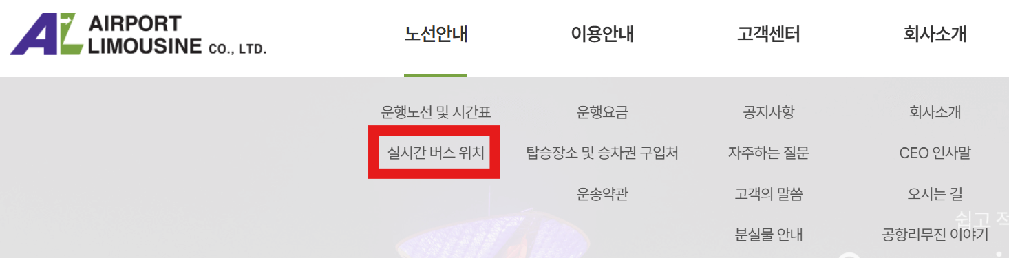 2. 홈페이지 상단 노선안내 선택 후 실시간 버스 위치 선택