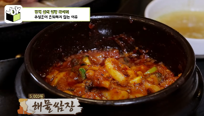 그리고 단골들은 필수로 추가주문해서 먹는다는 "해물쌈장", 오징어와 우렁이 들어가 있어 식감이 굉장히 좋고 달콤하면서도 매워서 입맛을 돋궈줍니다. 흰쌀밥에 해물쌈장을 슥슥 비벼먹어도 맛있지만 사장님이 추천하는 조합은 "데친 양배추+해물쌈장"이라고 합니다.