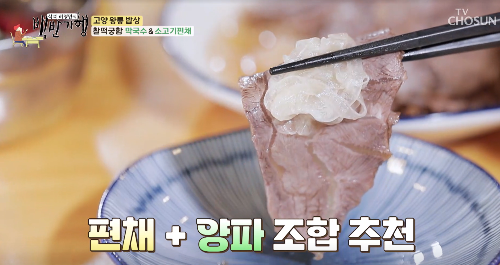 소고기 편채 밑에 깔려있는 양파와 함께 먹으면 더욱 맛있다고 하니 꼭 이 조합으로 드셔보시길 바랍니다!
