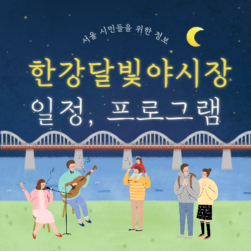 상반기 달빛야시장은 '반포한강공원'에서 개최되는데요, 야시장 일정과 프로그램 등을 확인해 보시고 일요일에 가족 또는 친구들과 행복한 시간 보내시길 바랍니다.